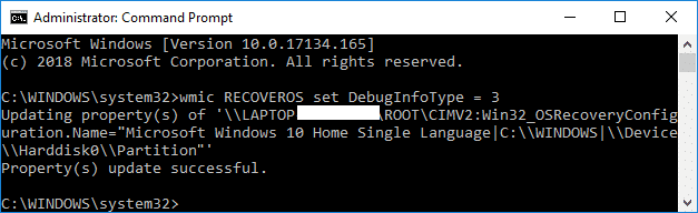 Sin archivo de volcado: wmic RECOVEROS establece DebugInfoType = 0 Volcado de memoria pequeña: wmic RECOVEROS establece DebugInfoType = 3 Volcado de memoria del núcleo: wmic RECUPEROS establecido DebugInfoType = 2 Volcado de memoria completo: wmic RECUPEROS establece DebugInfoType = 1 Volcado automático de memoria: wmic RECUPEROS establece DebugInfoType = 7 Volcado de memoria activo: wmic RECUPEROS establecido DebugInfoType = 1