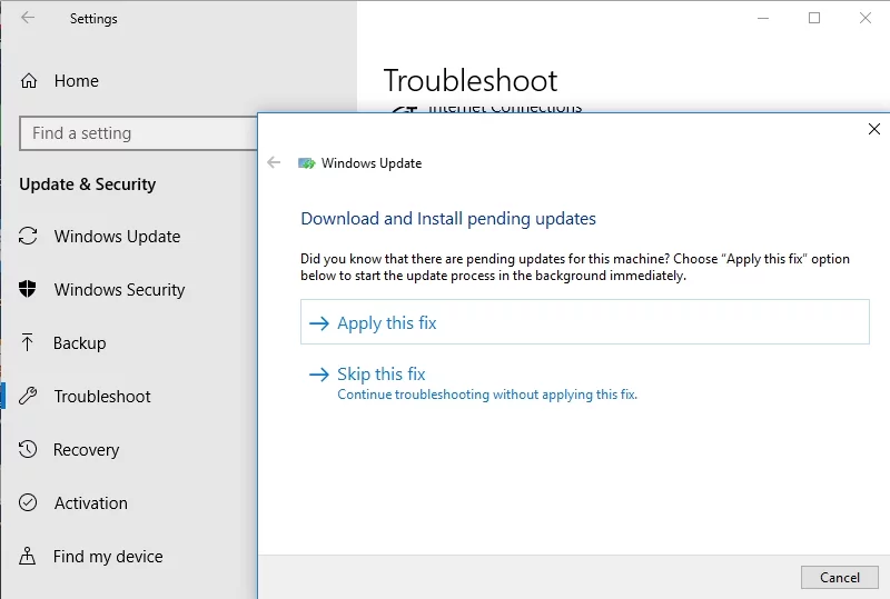 - Actualización 0xc1900204 : también puede encontrar este error mientras intenta actualizar su sistema. Puede resolver esto ejecutando el solucionador de problemas para las actualizaciones de Windows.