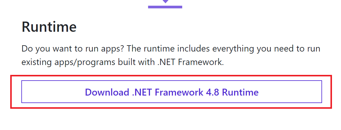 4. Maintenant, cliquez sur le bouton de téléchargement sous la section Runtime. Reportez-vous à l'image ci-dessus.