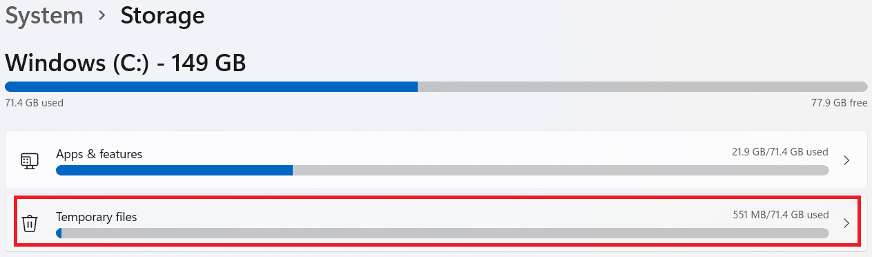 3. Tunggu Windows untuk memindai drive Anda untuk mengidentifikasi file sementara & file sampah. Kemudian, klik File sementara .