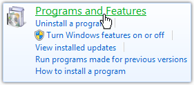 - Windows 7およびVistaでは、 [スタート]-> [コントロールパネル]-> [プログラム]-> [プログラムと機能]に移動します