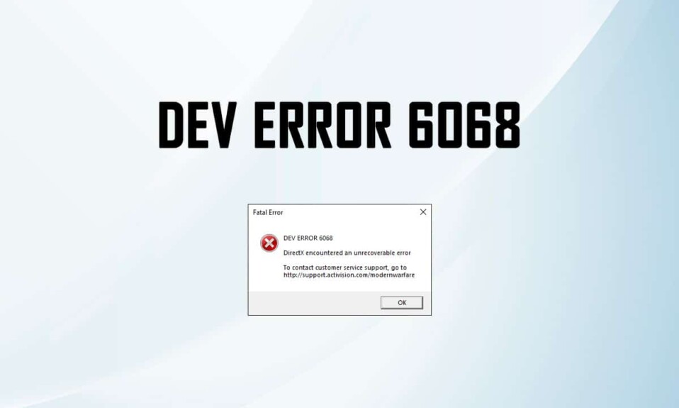ขณะเล่น Call of Duty คุณอาจพบข้อผิดพลาดหลายอย่าง เช่น ข้อผิดพลาดของ Dev 6071, 6165, 6328, 6068 และ 6065 ข้อผิดพลาดของ Dev 6068 เกิดขึ้นเมื่อคุณกด Play โดยแสดงข้อความ: DEV ERROR 6068: DirectX พบข้อผิดพลาดที่ไม่สามารถกู้คืนได้ หากต้องการติดต่อฝ่ายบริการลูกค้า ไปที่ http://support.activision.com/modernwarfare จากนั้นเกมก็ปิดตัวลงและไม่ตอบสนองเลย
