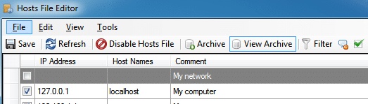 它为您的主机文件中的所有条目提供了一个表格界面,其中包含 IP 地址、主机名和注释列。 您可以通过右键单击通知中的主机文件编辑器图标来启用或禁用整个主机文件。